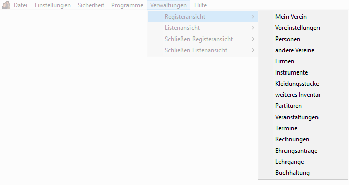 Hier können Sie eine Verwaltung in der Registeransicht öffnen.