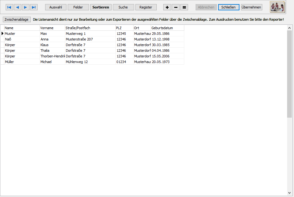 In dieser Ansicht sehen die Datensätze der aktuellen Verwaltung in Form eine Liste.