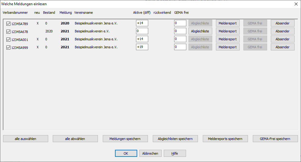 Wählen Sie nun aus, welche Meldungen eingelesen werden sollen und bestätigen die Auswahl mit