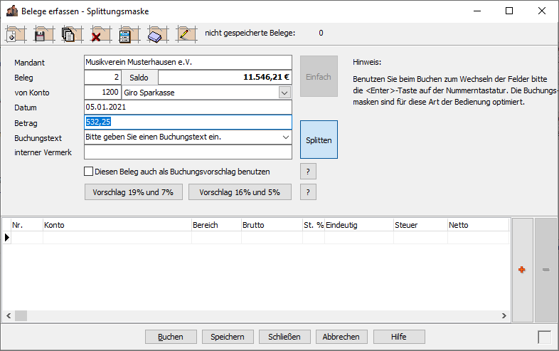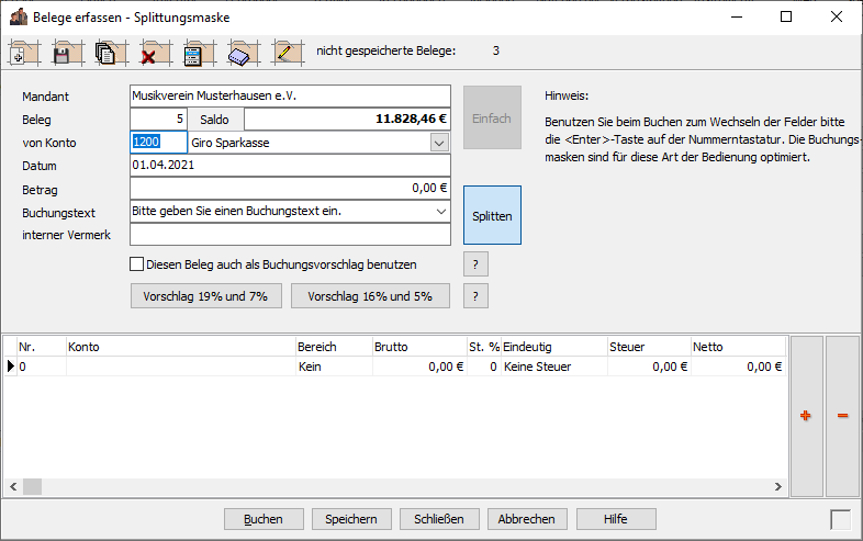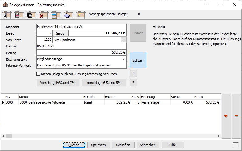 Damit haben Sie alles notwendige zum Belege erfassen durchgeführt und können die Maske schließen.