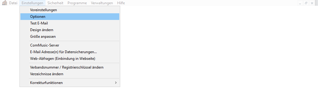 Es gibt grundsätzlich 2 Einrichtungsarten beim E-Mail-Versand im Programm. Um die Einstellungen vornehmen zu können, rufen Sie sich bitte unter Einstellungen die Optionen auf.