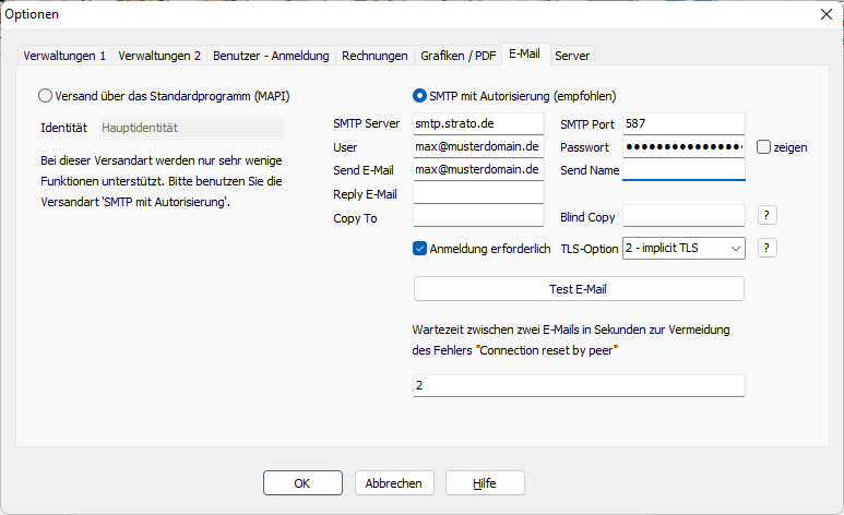 Dies sind die Beispieleinstellungen , wenn Sie ein E-Mail-Paket bei Strato haben.